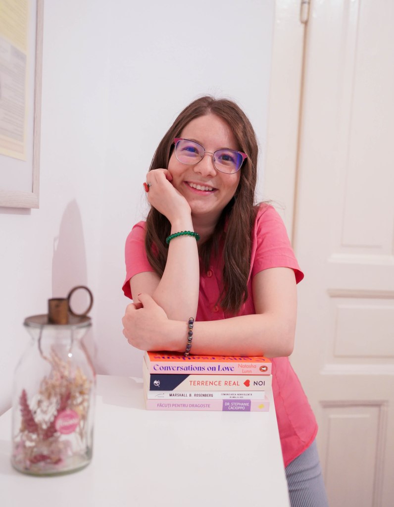 Chiar dacă știu că nu e totul roz, încerc să văd părțile bune din lume și să aduc o schimbare acolo unde se poate, în bucățica mea. Scriu și vorbesc sincer despre experiențe de viață, psihologie și dezvoltare personală. Nu mă tem să fiu vulnerabilă, dar nici să pun piciorul în prag atunci când este necesar. Încerc să mențin o atitudine echilibrată. Cu toate acestea, nu îmi plac tiparele toxice și cred cu tărie că doar asumarea responsabilității ne poate ajuta să fim mai buni. Dacă simți și tu același lucru, te invit să facem ceva diferit, ceva mai autentic.